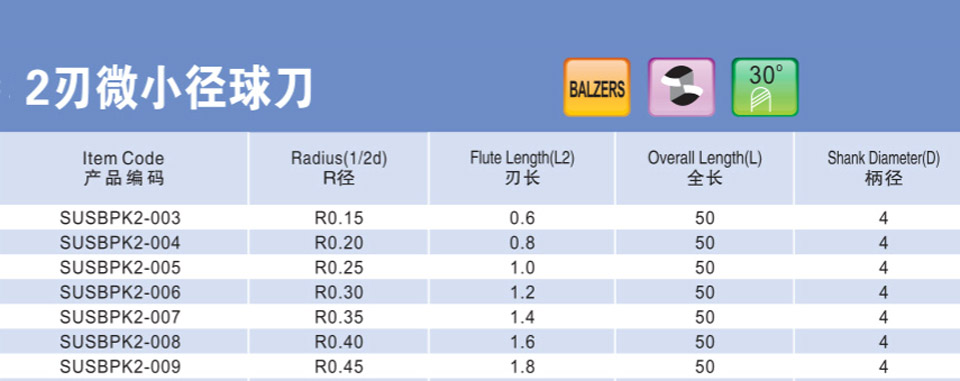 2刃微小徑球刀