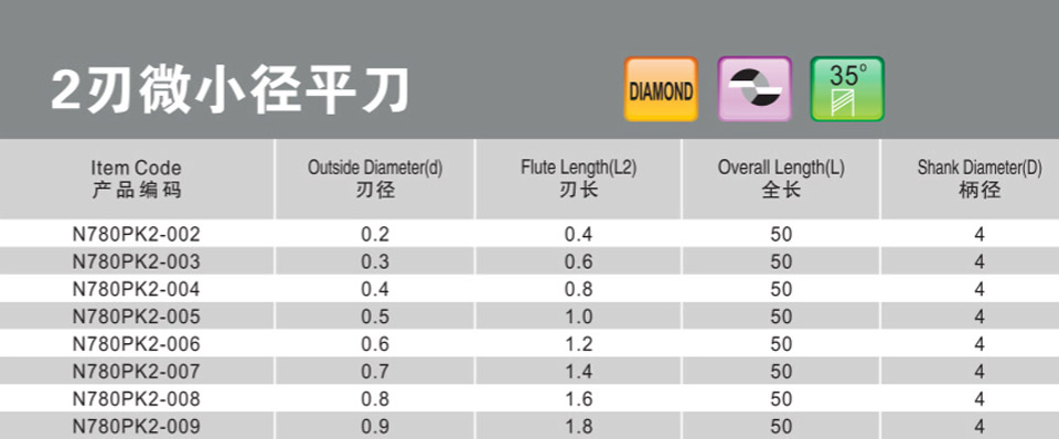 2刃微小徑深溝平刀