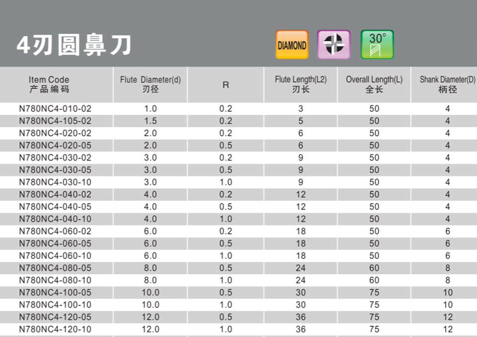 4刃小徑深溝圓鼻刀