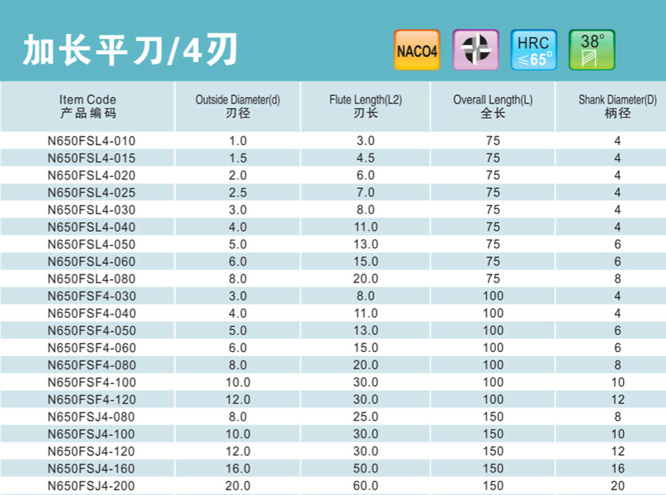 不等分不等螺旋加長平刀4刃